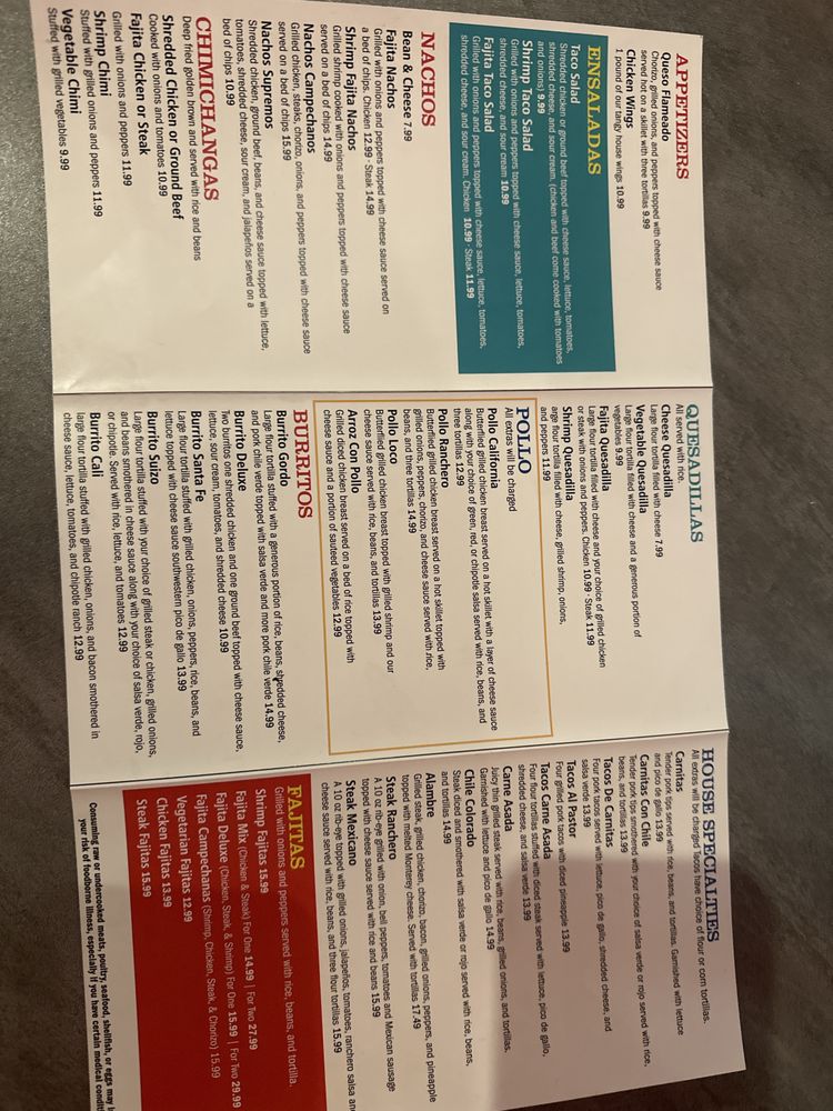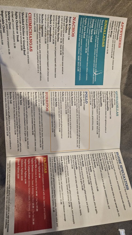 The menu is a delightful mix of classic flavors, featuring beloved appetizers like Queso Flameado and Chicken Wings. Their chimichangas, including Shredded Chicken and Buffalo Battered Shrimp, are popular choices, earning rave reviews from locals. Customer favorites include the Pollo California and Arroz Con Pollo, praised for their vibrant flavors and generous portions.